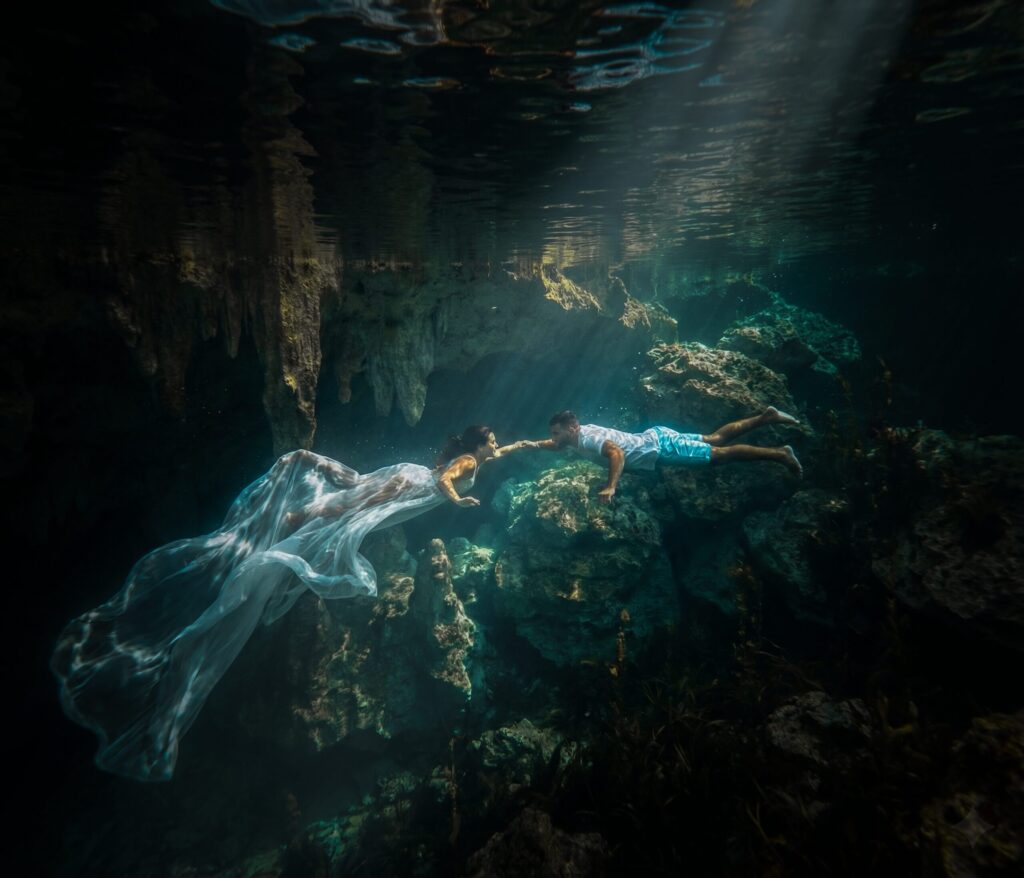 Yes, we offer all those sessions! If you’re dreaming of a unique underwater shoot in cenotes or a Trash the Dresss session in the ocean, we can make it happen.